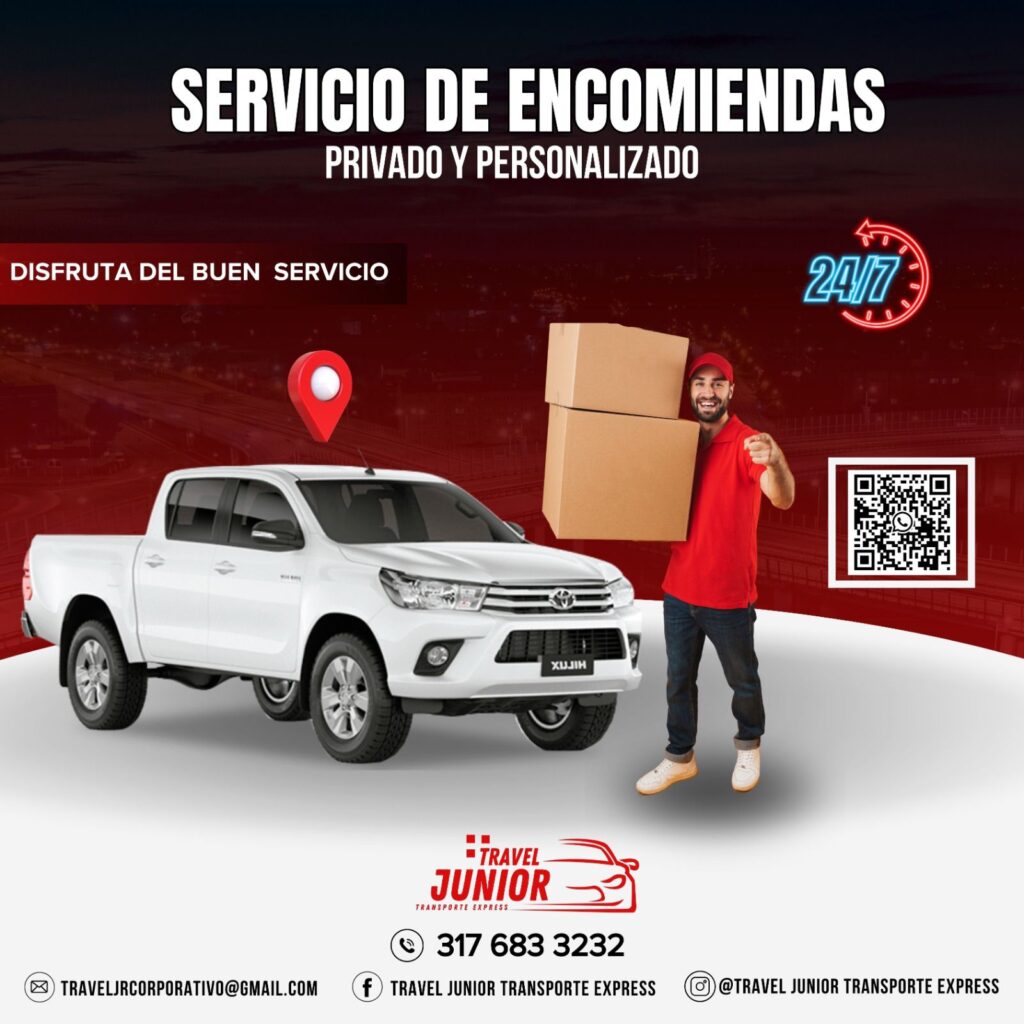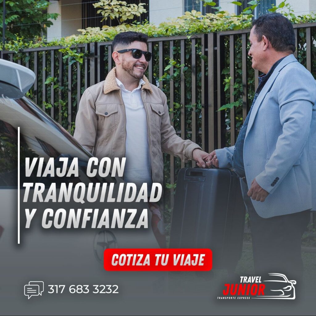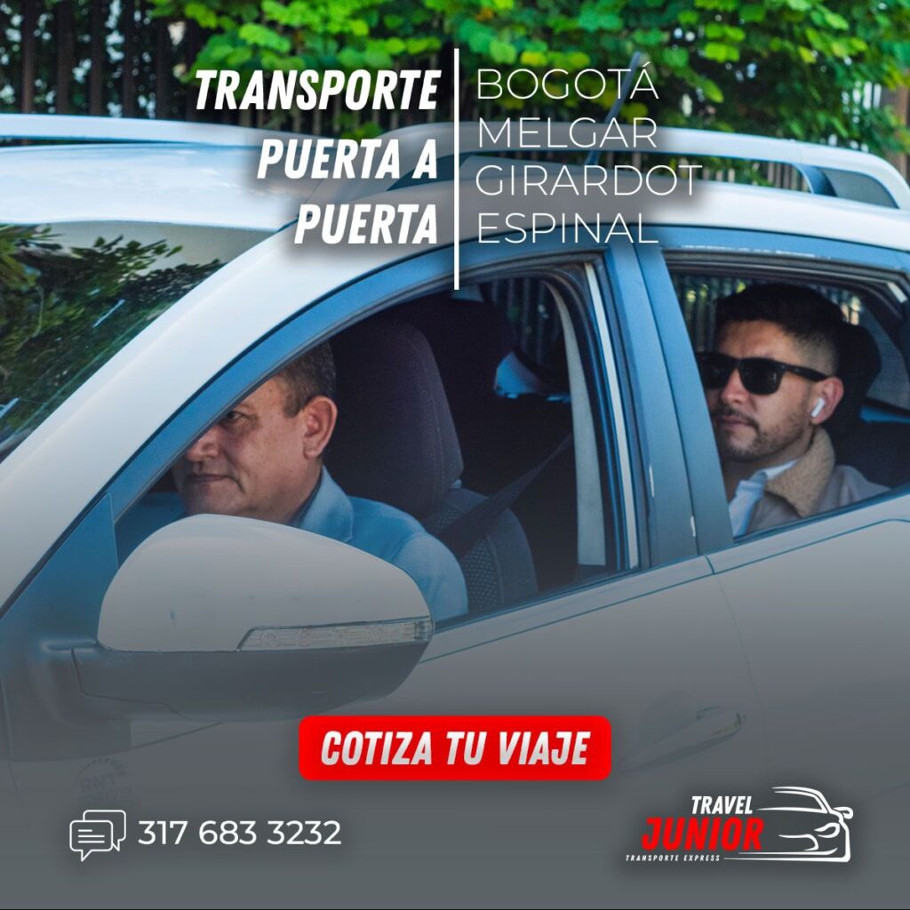 En Travel Junior brindamos transporte privado puerta a puerta, viajes expresos y envío de encomiendas 24/7. Conectamos Bogotá, Medellín, Villavicencio, Ibagué, Melgar, Girardot y sus alrededores, ofreciendo un servicio seguro, rápido y puntual para personas y paquetes.